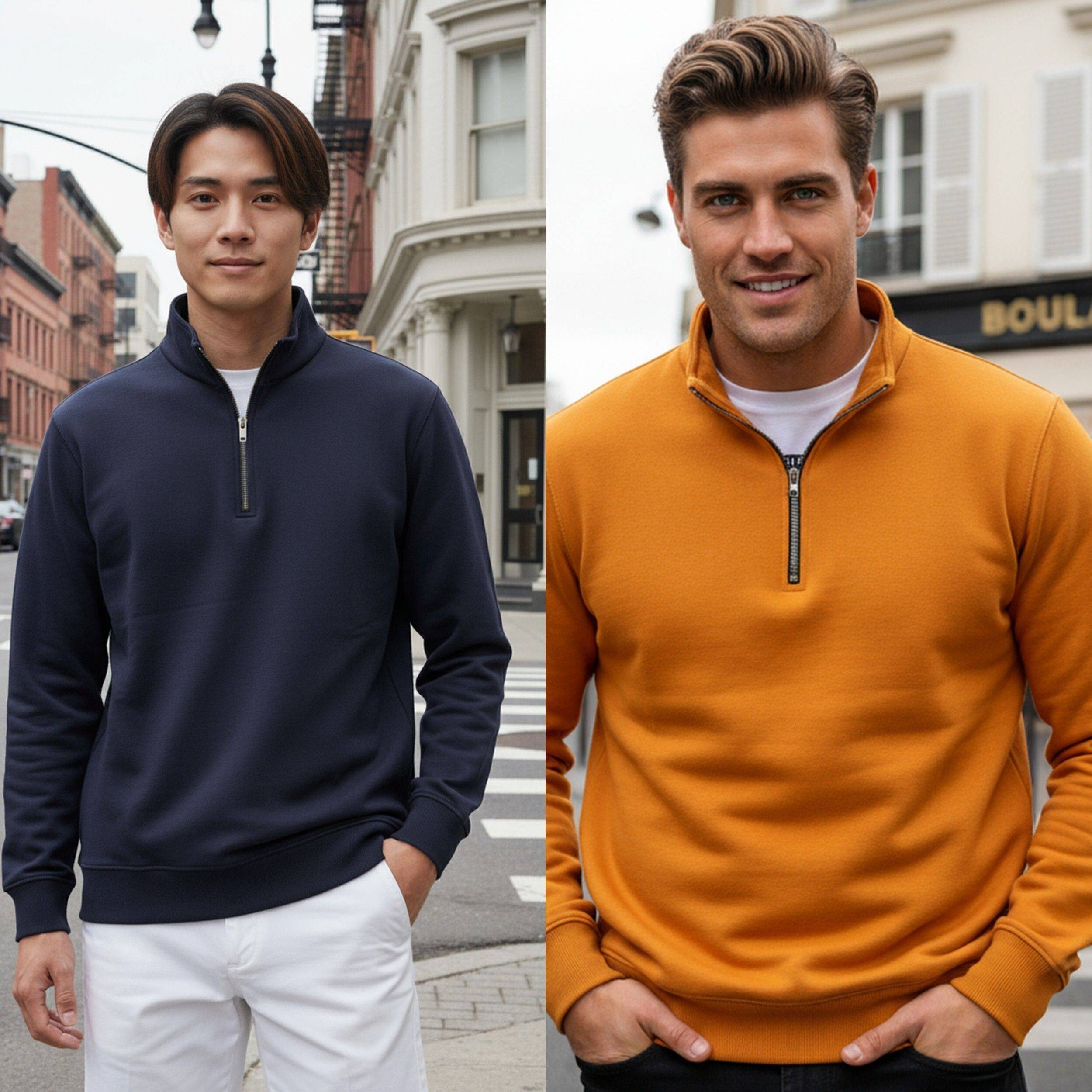 Elevate your wardrobe with this Stylish 2Pcs Combo High Neck Men's Sweatshirt, crafted from premium cotton fleece for unbeatable comfort and warmth. Featuring a sleek half-zip design, this sweatshirt effortlessly blends functionality with contemporary style.