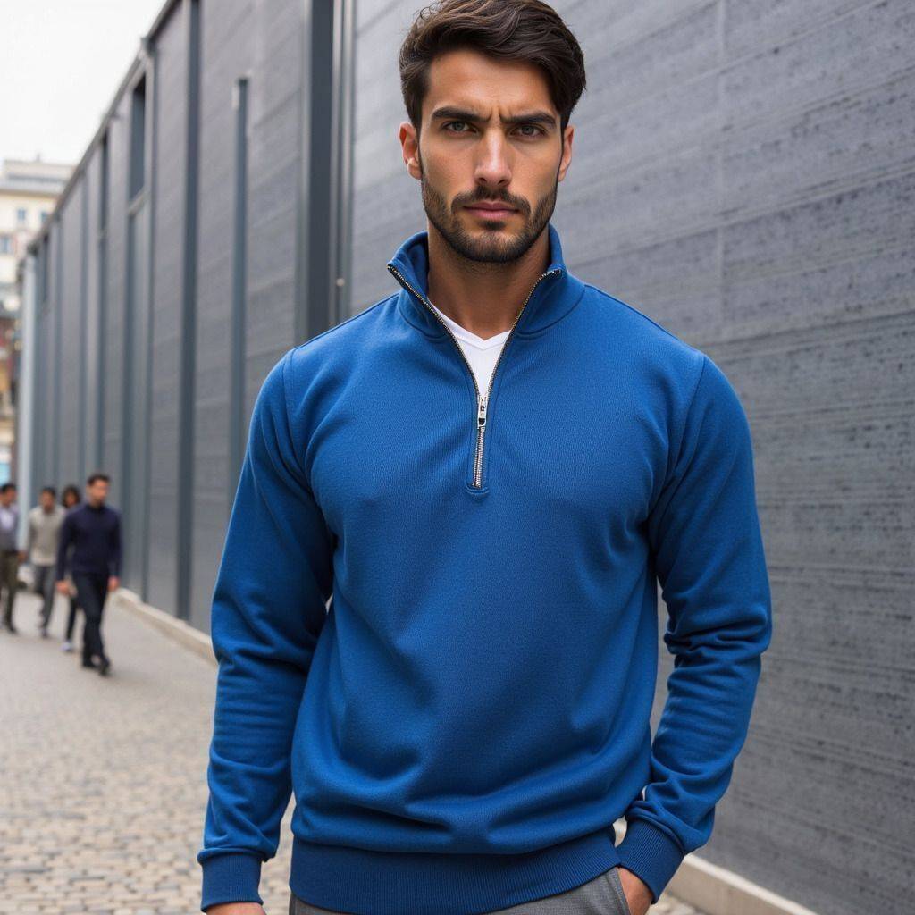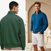 High Neck Men's Sweatshirt with Half-Zip Closure