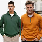 Elevate your wardrobe with this Stylish High Neck Men's Sweatshirt, crafted from premium cotton fleece for unbeatable comfort and warmth. Featuring a sleek half-zip design, this sweatshirt effortlessly blends functionality with contemporary style.
