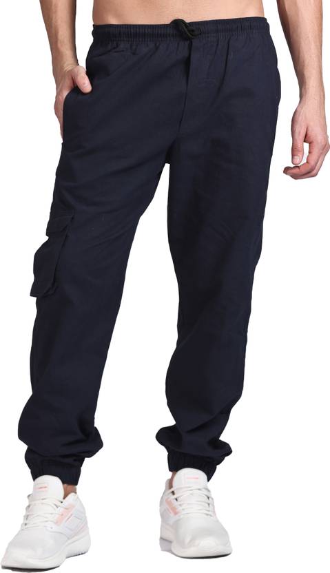 Hillberg Single pocket joggers for Men- Stretchable Slim fit ankle length Ideal street wear with topmost comfort with Zipper Pockets 2 Multi functional pocket & 1 Cargo Pocket (Navy Blue Color/Medium Size)