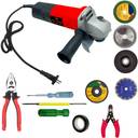 The Angle Grinder is more than just a tool; it's an extension of your creativity and craftsmanship. Make your projects come to life with unparalleled precision and efficiency.Elevate your skills and empower your projects with the Angle Grinder. Discover endless possibilities and take control of your creations. Get ready to grind, cut, and shape with confidence and precision!Order your Angle Grinder today and redefine the way you work. Join the ranks of professionals and DIY enthusiasts who trust this tool for their every need.It comes with 5Pcs Hand Tool Kit(Plier, 2in1 Screwdriver, Line Tester, Electrical Tape, Wire Cutter), 1Pcs Metal Cutting Wheel,1Pcs Wood Cutting Wheel, 1Pcs Tile Cutting Wheel, 1Pcs Grinding Wheel, 1Pcs Flap Disk Wheel.