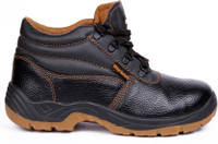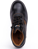 The standout feature of these shoes is the steel toe cap. This crucial safety element is embedded in the design to protect toes from workplace hazards. It protects feet from heavy objects, compression, and impacts and reduces injury risks. The upper is made from synthetic leather, give durability and resistance to wear and tear. It's easy to clean and maintain and ensures longevity and sustained appearance. Essential for those in demanding work environments, assuring both protection and reliability.