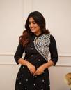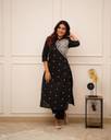 This stylish COR-RD pant kurta set in black is crafted from a comfortable cotton blend, perfect for casual or semi-formal occasions. The kurta features 3/4 sleeves and a sleek design, offering both elegance and ease of movement. Paired with matching pants, this set provides a chic and versatile outfit for any event.
