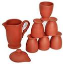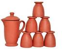 Clay Water Jug, Water Pot 1 Litre with Lid with 6 glass