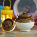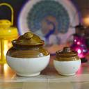 THE HIMALAYA CRAFT Ceramic Pickle Jar - 500 ml, 150 ml (Pack of 2, Brown, White)