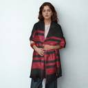 Experience the timeless elegance of this handwoven wool stole from Himalayan Vibes, crafted in the heart of Kullu, Himachal Pradesh. This sophisticated black stole features striking red and blue stripes complemented by intricate geometric motif borders that showcase traditional Himalayan artistry. Measuring 2 metres in length and 73 centimetres in width, this versatile piece offers generous draping options for various occasions. The premium wool construction ensures lightweight warmth while maintaining a luxurious feel. Each stole is meticulously woven on traditional looms, resulting in unique characteristics that tell the story of authentic handloom craftsmanship. The distinctive Kullu Patti design element adds a touch of regional heritage, making it perfect for both casual and formal settings. Whether draped as a shawl or styled as a stole, this handcrafted piece serves as a beautiful bridge between traditional artistry and contemporary fashion, making it an ideal choice for those who appreciate authentic Himalayan craftsmanship.