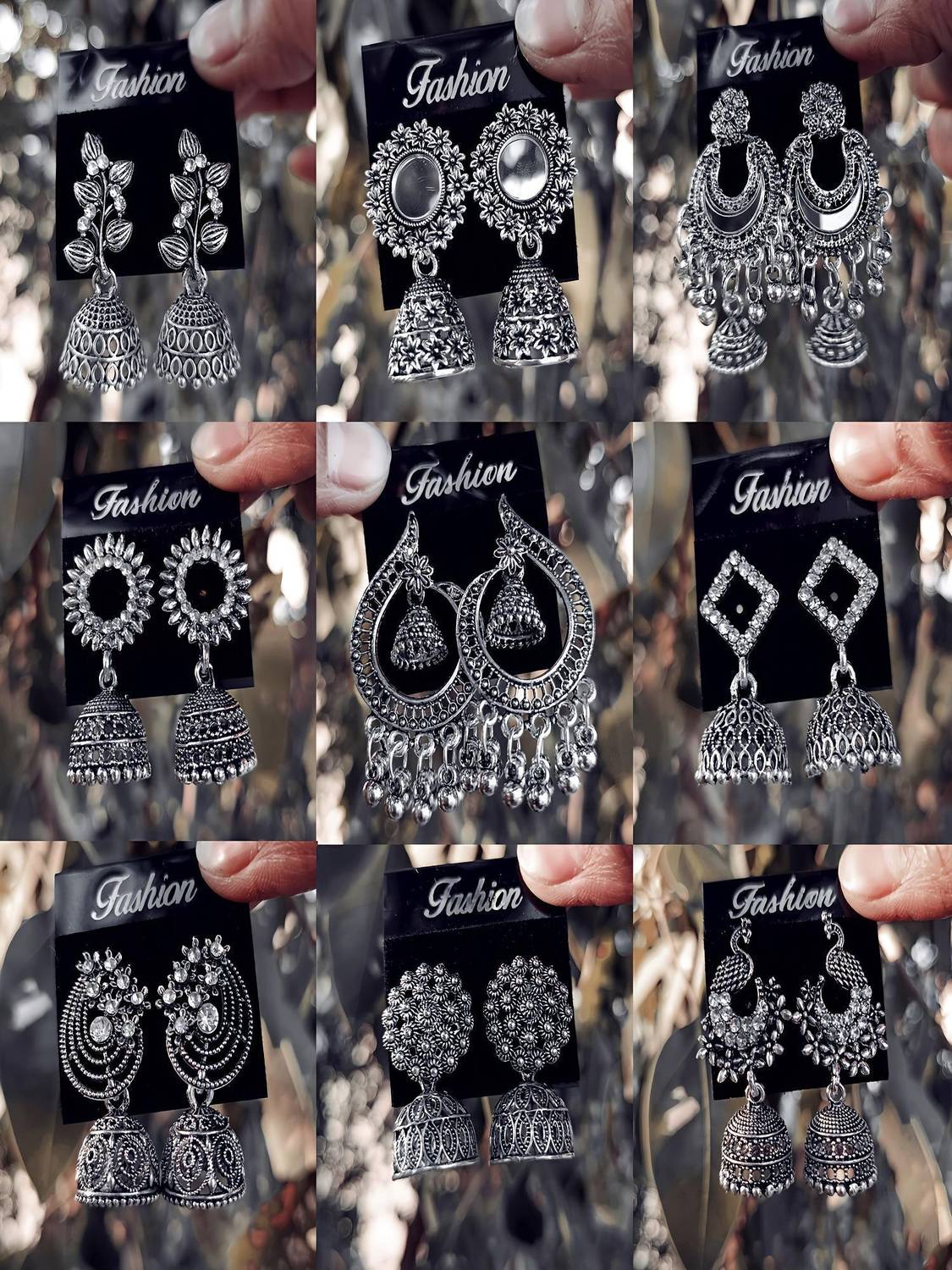 Exquisite Silver Oxidized Bangle Bracelet with Hanging Jhumki Latkan Combo Pack of 4 for Women and Girls