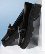 HimQuen Women platform heel synthetic moccasins for girls Loafers For Women (Black , 5)