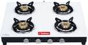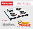 Hindflame 4 Burner Marvel White Toughened Glass Manual Gas Stove (4 Burners)