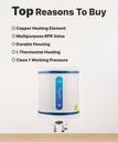 Sporting an i-Thermostat, this water heater ensures powerful heating and saves energy at the same time. Also, its auto cut-off technology provides overheating safety and helps save power. Moreover, it creates a balance between the current and required temperatures.