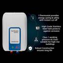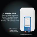 Featuring Ingress Protection (IPX1), this water heater can prevent the entry of all types of water splashes as well as moisture, ensuring optimal safety. So, this water heater is safeguarded against damages caused by accidental water splashes. Also, built with an Immersed Thermostat, this water heater controls temperature. And, with its instant cut-off feature, this water heater ensures improved safety. Moreover, equipped with a Pressure Release Valve (PRV), this water heater prevents pressure accumulation.