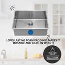 Thanks to its soundproof undercoating and thick pads, this sink can effectively absorb and reduce any noise resulting from vessels coming into contact with its bowl.