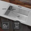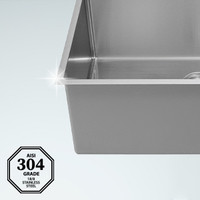 As it is made from high-quality 304-grade stainless steel containing up to 18% chromium and up to 8% nickel, this robust kitchen sink delivers enduring performance. Additionally, the steel's chromium content reacts with oxygen to create a protective layer that keeps this sink safeguarded against external factors. Moreover, this sink is specifically designed with exceptional corrosion-resistant properties with the use of 304-grade stainless steel, making it excellent for use in the kitchen.