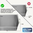 Thanks to its tight radius corners, this handmade sink provides additional usable space, making it effortless to carry out daily kitchen tasks.