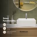 Transform your bathroom into a haven of contemporary elegance with the Hindware Italian Collection Inox Table Top Wash Basin, a premium fixture that seamlessly blends style, durability, and functionality. Expertly crafted from high-quality ceramic, this over-the-counter wash basin showcases a square shape that exudes modern sophistication, making it an eye-catching centerpiece for any bathroom setting. The stunning Star White finish adds a touch of purity and minimalism, complementing a wide range of interior styles—from sleek urban spaces to elegant spa-inspired bathrooms. Its table-top installation offers a clean, elevated look while also ensuring easy access and effortless integration with designer countertops. The basin’s smooth, non-porous surface is not only aesthetically pleasing but also highly resistant to stains, scratches, and discoloration, ensuring it maintains its pristine appearance for years to come. Designed with thoughtful proportions, the Inox basin offers ample depth and space, preventing splashes and enabling a comfortable and convenient hand-washing experience. The square silhouette and sharp edges add geometric charm, while its strong ceramic body guarantees reliable performance under daily use. Whether you’re renovating your bathroom or designing a luxury powder room, this basin elevates your space with its sculptural beauty and premium build. Its 10-year warranty further reflects Hindware’s commitment to quality and customer satisfaction, offering complete peace of mind with every use. Easy to clean and maintain, the basin resists common bathroom issues like water spots and residue, making it as practical as it is beautiful. With the Hindware Inox Table Top Wash Basin, you’re not just adding a utility fixture—you’re making a design statement that reflects your refined taste and attention to detail. Elevate your bathroom décor and experience unmatched quality with this stylish, durable, and timeless ceramic basin from Hindware’s celebrated Italian Collection.