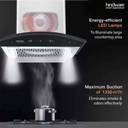 This energy-efficient Hindware chimney uses LED lights to optimally illuminate your kitchen countertop so that you can cook to your heart's content without worrying about your electricity bill.