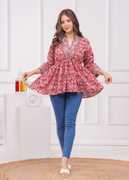 HINGLAJRAJ Women Printed Flared Kurta (Red)