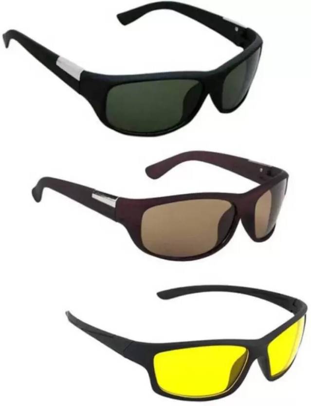 UV Protection Wrap-around Sunglasses (Free Size) (For Men, Multicolor)