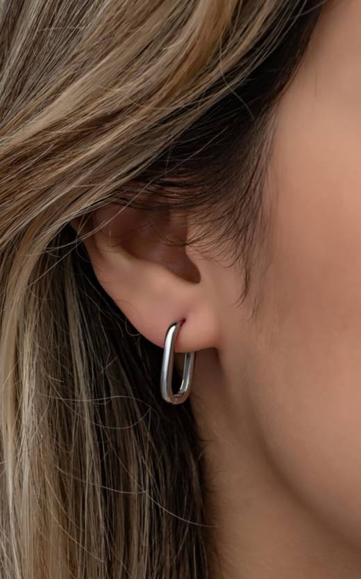 Hira Jewellery Rectangular hoop Earrings Sterling Silver Stud Earring