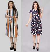 A good quality dress for women. It will give them a classic and trendy look.This is designed as per the latest trends to keep you in sync with high fashion and with wedding and other occasion, it will keep you comfortable all day long. The lovely design forms a substantial feature of this wear.This is floral printed western knee length dress which is made of fine quality crepe fabric and also it is stitched as western look. belt which is create tredy look on your outfit. floral printed western anarkali flared dress has printed and flared dress is available it can wear causual, party, function etc it is unique in pattern and sleeveless (short sleeve attached inside) is available fabric is soft so it is comfortable to all day. we have also manufacture wester wear dress dress , printed dress , floral printed dress , floral printed Dress , one piece dress , skater dress ,dress , combo western dress , frock dress , checked western dress , striped wetern dress , party wear dress , casual gown, party wear gown , floral printed gown , striped dress , digital dress , striped dress , casual dress , daily wear dress , regular dresses at low price so please visit our store for more collection