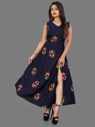 This is Floral printed western maxi dress which is made of fine quality crepe fabric and also it is stitched as western look. front slit which is create tredy look on your outfit. Floral printed western dress has maxi length a-line and flared dress is available it can wear causual, party, function etc it is unique in pattern and sleeveless is available fabric is soft so it is comfortable to all day. we have also manufacture wester wear dress , party wear dress , one piece dress , bodycon dress , long gown , printed kurti , straight kurti, a-line dress , floral printed dress,low price dress , light weight dress , rayon kurti , straight dress , flared dress , skater dress , striped dress , weatern dress for women ,simple indo western dress , designer , stylist , long , party , wedding , short , kee length , black , blue , casual , bollywood , indian , new , fancy , winter , frock , formal , frock , mini , midi , plus size , beautifull , new , girls dress with unique design
