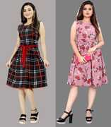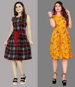 A good quality dress for women. It will give them a classic and trendy look.This is designed as per the latest trends to keep you in sync with high fashion and with wedding and other occasion, it will keep you comfortable all day long. The lovely design forms a substantial feature of this wear.This is floral printed western knee length dress which is made of fine quality crepe fabric and also it is stitched as western look. belt which is create tredy look on your outfit. floral printed western anarkali flared dress has printed and flared dress is available it can wear causual, party, function etc it is unique in pattern and sleeveless (short sleeve attached inside) is available fabric is soft so it is comfortable to all day. we have also manufacture wester wear dress dress , printed dress , floral printed dress , floral printed Dress , one piece dress , skater dress ,dress , combo western dress , frock dress , checked western dress , striped wetern dress , party wear dress , casual gown, party wear gown , floral printed gown , striped dress , digital dress , striped dress , casual dress , daily wear dress , regular dresses at low price so please visit our store for more collection