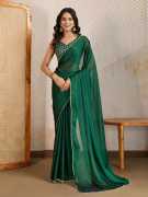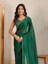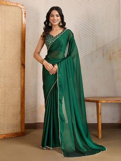 zili Solid/Plain, Embroidered, Embellished Bollywood Georgette Saree (Green)