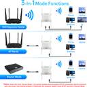 ?[3 Modes -WiFi Repeater Mode, AP Mode, Router Mode]: 1. WiFi Repeater Mode: wireless connection 40 devices, 2 network cables connected to 2 wired devices. 2. AP Mode: 1 network cable is connected to router, wireless connection 40 devices, another network cable is connected to 1 wired device. 3. Router Mode: Our repeater can replace the router to access the optical modem device (optical modem need have network), wireless connection 40 devices, another network cable connected to 1 wired device.