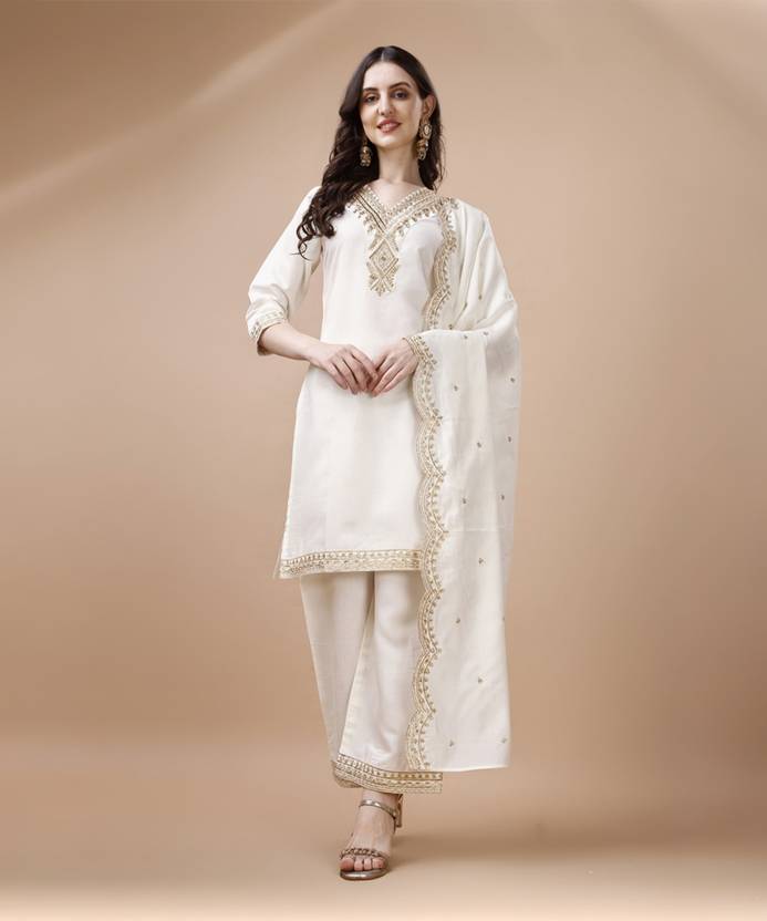 Fit Type: Straight Kurta Fabric: Chanderi Silk and Palazzos Fabric: Chanderi Silk and Dupatta Fabric: Chanderi Silk Kurta Color: Green and Palazzos Color: Green and Dupatta Color: Green Style: Straight, Length: Knee Length , Sleeves: 3/4 This set includes: 1 Kurta and 1 Palazzos and 1 Dupatta, Occassion: Traditional wear, Casual Wear, party wear, evening wear, Daily wear,kurta set for women, Women Kurta,Women Kurta Sets Kurtis, Women Kurta Pant