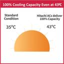 Even at an ambient temperature as high as 43ºC, this inverter air conditioner is designed to provide efficient cooling.