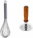 HITECH KITCHEN Combo Stainless Steel Potato Vegetable Masher & Egg Whisker Kitchen Tool Set Stainless Steel, Wood Balloon Whisk (Pack of 2)