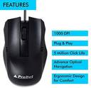 HITECH WORLD Prodot USB Mouse Wired Ambidextrous Laser Mouse (USB 2.0, Black)