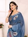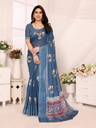 HITESH ENTERPRISE Floral Print Bollywood Cotton Linen Saree (Blue)