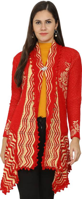 Geometric Flared Shrug by HITTIKA, will keep you warm in the chilly winds and look chic with dark washed jeans and sneakers. Add this everlasting to expand your wardrobe this winter season. Quality assured product.