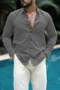 Men Regular Fit Solid Curved Collar Casual Shirt