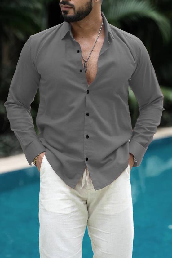 Hityani Men Solid Casual Grey Shirt