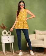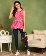 Style effortlessly in this Rayon Digital Print Peplum Top by Hiva Trendz crafted in Rayon fabric featuring all-over Geometric prints, V-neck with gathered detailing, sleeveless with fit and flare silhouette to get desired fit at the waist.Have some fun with this cute and comfortable top. This top piece will enhance your beauty. The tunic ethnic Top looks pretty good and exactly the same as in the picture.
