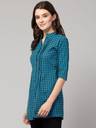 Model : Bust 34 ” I Height 5.7” I Wearing Size - X-SMALL, Fabric: This Checkered blue tunic made of Cotton Fabric, Design: This blue tunic come with front button closure, mandarin collar with belt, Fitting: This is a regular fitted casual tunic for women., Wash Care: Hand / Machine cold water wash I Dry in Shade I Do Not Bleach I Line Dry