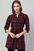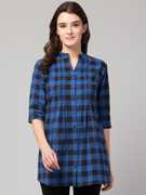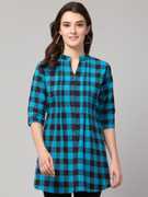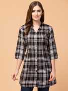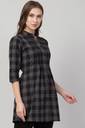 Hive91 Casual 3/4 Sleeve Checkered Women Grey Top