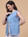 Refresh your casual wardrobe with this chic light blue sleeveless top from Hive91. Made from soft cotton denim fabric, this top features a unique round keyhole neckline with dual tie-up closures at the bust and neckline — adding a playful yet stylish twist to your look. The relaxed fit and sleeveless design make it a breezy choice for warm days. Pair it with jeans, shorts, or jeggings for a trendy, laid-back vibe that works for brunch, vacations, or casual hangouts