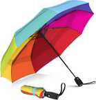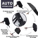 Hiwaga foldable umbrellas for men, women are designed with you in mind and built to ensure the ultimate protection and comfort in any weather condition. Measuring just 42 inches long when folded and lightweight for easy storage in purses, briefcases, backpacks, and more. Rinai Travel Umbrella is fortified with 9 resin-reinforced fiberglass ribs that flex slightly to withstand powerful gusts without turning inside out and defends against the elements like no other umbrella. A useful addition to any travel bag, backpack, or briefcase, this Rinai compact automatic travel umbrella helps keep you dry when the skies turn dark and the pouring rain begins. From warm Spring showers to fierce Fall storms and unruly wind tunnels, the Rinai umbrella makes for a great take-along companion when you need to get from here to there without getting drenched. Built to last through many rainy seasons, year after year, the Rinai compact automatic travel umbrella features durable steel construction with a canopy made of reliable, waterproof pongee fabric. Sturdy, yet lightweight, the umbrella helps get you where you're going without having to worry about the weather. Thoughtfully designed, the umbrella's canopy automatically opens and closes with the simple touch of a button. Push the button to open; push the button to close. After the canopy collapses, manually pull the upright support down into the locked position.