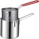 Upgrade your kitchen with our Stainless Steel Deep Frying Pot, designed to make frying your favorite foods effortless and efficient. This mini deep oil fryer comes equipped with a long handle strainer basket, making it perfect for cooking a variety of delicious items such as French fries, shrimp, fish, and chicken wings.Ideal for smaller batches, this mini fryer is perfect for making crispy French fries, succulent shrimp, tender fish, and flavorful chicken wings. Its compact size makes it a great addition to any kitchen, whether you're cooking for a family meal or a small gathering.Cooked to a perfect golden-brown color, these fries not only taste great but also look appetizing, enhancing the visual appeal of your meal.Ideal for a wide range of dishes, our French fries are perfect as a side with burgers, sandwiches, or grilled meats.Each fry is expertly cut and pre-cooked to achieve an irresistibly crispy texture on the outside while maintaining a tender, fluffy interior.Engineered to optimize energy consumption, this oil fryer minimizes fuel usage while delivering high-performance frying.Designed for efficient and even heat distribution, this pot is ideal for frying, sautéing, and cooking a wide range of dishes. The deep design ensures ample space for cooking large batches of food, while the sturdy construction provides durability and long-lasting use.The deep design of the pot ensures even heat distribution, allowing for consistent frying results. The high sides prevent oil splatters, keeping your cooking area cleaner and safer.Upgrade your kitchen with our Stainless Steel Deep Frying Pot, designed to make frying your favorite foods effortless and efficient. This mini deep oil fryer comes equipped with a long handle strainer basket, making it perfect for cooking a variety of delicious items such as French fries, shrimp, fish, and chicken wings.The capacity of this deep fryer pot is 1200ML. This fryer pot can hold a small amount of oil. It helps to fry a lot of food with a small amount of oil and fry whatever you want. Elevated pot body to prevent oil splashing.Our deep fryer pot comes with a stainless-steel oil filter for durability. You can fry your favourite fish, chips, chicken wings, drumsticks, chips, pumpkin pie, tempura, shrimp and turkey drumsticks with this deep fryer pot.The extended anti scalding handle will not be splashed by oil, and the thoughtful design will not easily. At the same time, the handle is firmly installed, so you can move the fryer pot safely and easily.Our deep fryer pot comes with a stainless-steel oil filter for durability. You can fry your favourite fish, chips, chicken wings, drumsticks, chips, pumpkin pie, tempura, shrimp and turkey drumsticks with this deep fryer pot. After frying, take out the strainer and you can take out the fried food at one time, which is very convenient. You can also use it as bacon grease container. You Can Fry Your Favorite Fish, Chips, Chicken Wings, Drumsticks, Chips, Pumpkin Pie, Tempura, Shrimp And Turkey Drumsticks With This Deep Fryer Pot.Durable Stainless Steel Construction Crafted from high-quality stainless steel this frying pot is durable and resistant to corrosion ensuring long-lasting performance. The stainless steel material also provides even heat distribution for consistent cooking results.1200ml Capacity With a generous capacity of 1200ml this frying pot allows you to cook large batches of food making it ideal for family meals or entertaining guests. The ample size reduces the need for multiple cooking sessions saving time and effort in the kitchen.