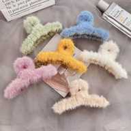 HKD SALES Faux Fleece Fur Hair Clips Simple Soft Fluffy Plush Hair Clips for Women- 6 Pcs Hair Claw (Multicolor)