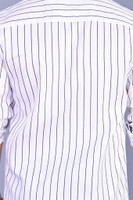 The shirt's striped pattern elevates your look to a more sophisticated and timeless one. Stripes give off a classic and adaptable look. The smooth transition between events in this design lets you make an impression in formal and informal settings. The shirt is an excellent choice for a variety of occasions because of its stripes, which add flair and versatility.