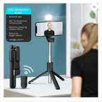 HLMOBILE AY Portable Selfie Stick Tripod with Attached Flash Light and Bluetooth Remote Bluetooth Selfie Stick (Black, Remote Included)