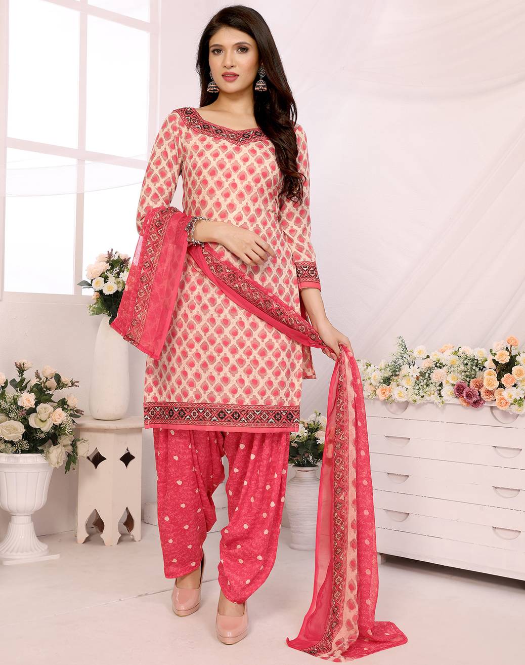 Womens Crepe Printed Unstiched Dress Material. Add style to your Daily Wear Collection with this Printed Dress material Salwar suit. 1 Unstitched Salwar, 1 Unstitched Top, 1 Dupatta.Top & Bottom Fabric : American Crepe, Dupatta Fabric : Martina You can use it for daily wear purpose it will give you immense comfort and fresh styling look.