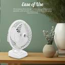 Equipped with an effective motor, this table fan delivers reliable, consistent performance. Its strong motor ensures powerful airflow, effectively circulating cool air throughout your space. Hence, you can enjoy consistent cooling and comfort, even during hot and humid conditions, with this dependable table fan.