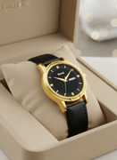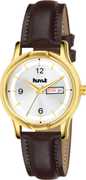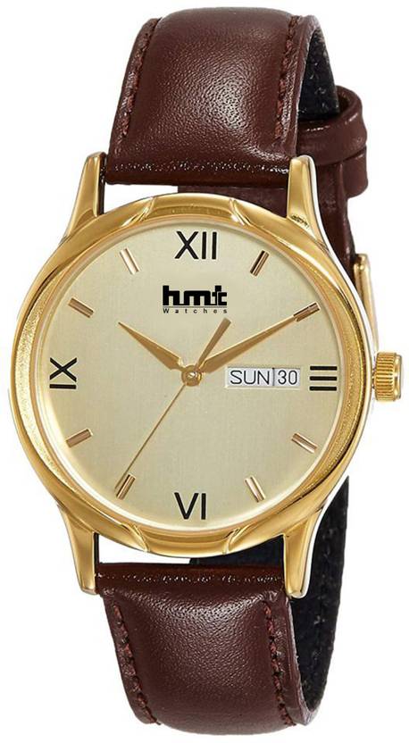HMT DLX HMT DLX Day & Date Golden Dial Brown Strap Analog Watch - For Men