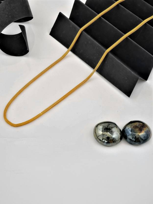 Our One Gram Gold Jewelry Comes With A Coating Of Gold On It, Which Makes It Look Similar To Real 22-Carat Gold Jewelry And This Chain Work Is Handmade Process Like Real Gold Jewellery Making., Gold-plated Jewellery Exudes A Radiant And Timeless Charm, Achieving A Brilliant And Opulent Appearance Through A Delicate Layer Of Gold Applied Over A Braas Metal, Allowing You To Adorn Yourself With Elegance And Style., Every Occassion You Can Wear And Shiny Your Look