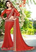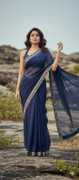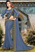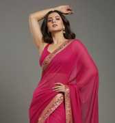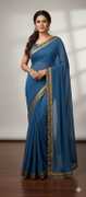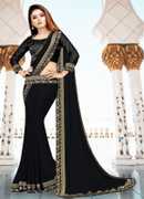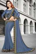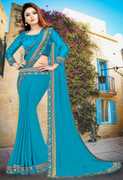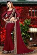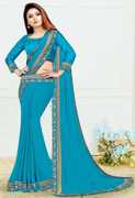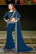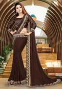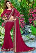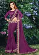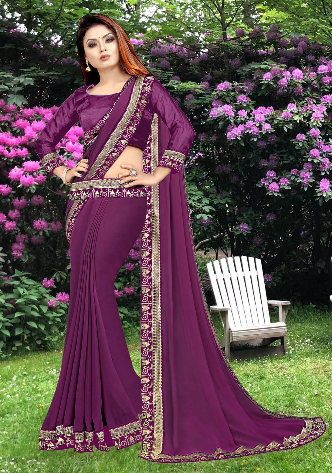 HNC Retail Temple Border Bollywood Lycra Blend, Chiffon Saree (Purple)